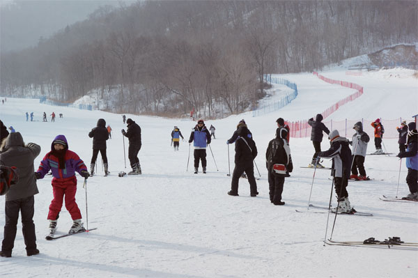 我們?nèi)啿剂κ且セ┑模∫宦?tīng)這個(gè)安排,我就興奮不已,這是項(xiàng)從未嘗試過(guò)的運(yùn)動(dòng),我想一定很刺激。但當(dāng)時(shí)我對(duì)滑雪很沒(méi)概念,以為只是在平坦的雪地上隨便滑滑,是北方一般的家庭里都可以做的游戲。可沒(méi)想到,當(dāng)我們快到滑雪場(chǎng)時(shí),看到眼前山坡上那一條條寬大的白色雪道,如同垂直掛下的瀑布時(shí),“滑雪”才像一個(gè)巨大的驚嘆號(hào)一樣砸進(jìn)我的心中:從那樣的山頂上滑下來(lái)?不滾成雪球才怪呢!