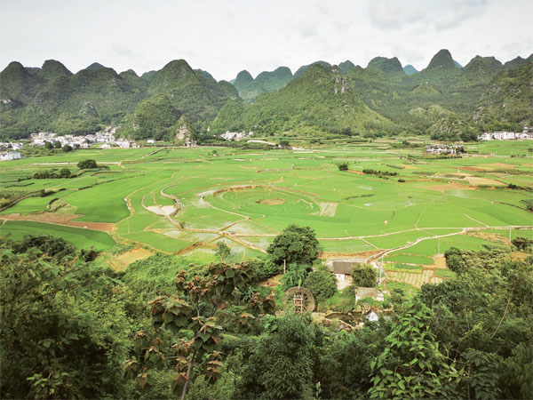 這里的峰林不是村莊的障礙,而是村莊的護佑神。它們給平地與平地之間開著“門”,通著道,村莊與村莊之間無需“愚公移山”,無需開山筑路,卻自然地形成了屋舍相連、道路相通的宜居之處。這里坐落著8個以布依族為主多民族融合的行政村76個村民小組。冬天來了,卻無嚴寒,因為峰林是寒風的屏障,擋住了北來的風;夏日里也無酷暑,因為山腳平曠,風來風往,這里不會悶熱。最神奇的是,在大片的田野中長了一個天然的八卦形“漏斗”。“漏斗”漏什么?漏水!豐沛的雨季到來時,一馬平川的大地上往往會有大水漫灌之虞,而在萬峰林就沒這樣的擔心了,因為地面水一多,便都會從這漏斗處漏掉。漏到哪里?漏到地下河。實際上,這萬峰林下的暗河四通八達,但到底有多少、有多深、有多長、通向哪?則無人知道。有些人家建房時不小心挖到暗河,水就會涌上來,得用水泥石頭墊高來建。