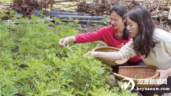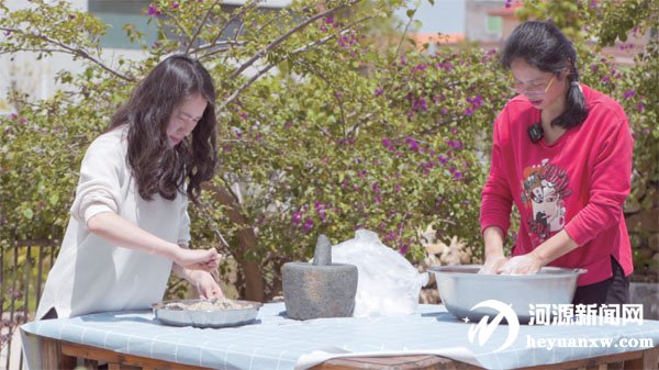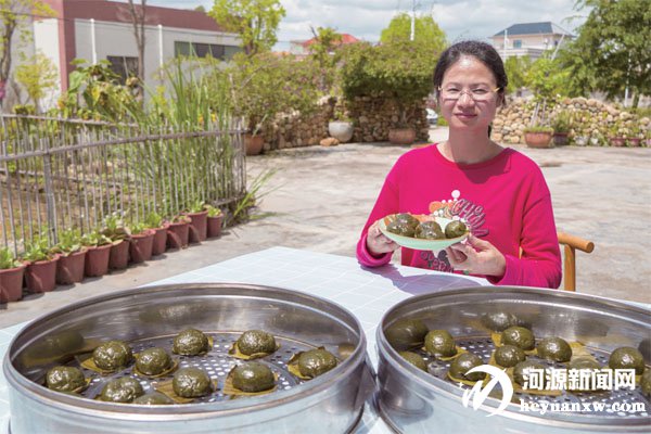 昨日,記者在東源縣到吉宿的庭院里,只見艾草青綠,冒著稚嫩的青葉。老板梁鳳嬌正忙著準備艾草、糯米粉、芝麻、花生、糖等制作艾粄的食材。