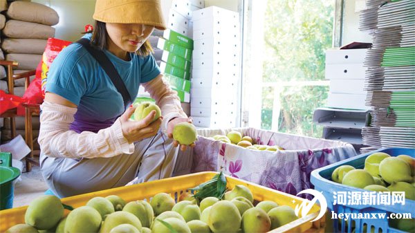 在連平縣光大種植專業合作社內,桃農們正在對采摘下來的桃子分揀打包,他們迅速地將個頭均勻、外觀完好的優質鷹嘴蜜桃挑選出來,統一打包發送到消費者手中。據該合作社相關負責人介紹,今年受天氣等各種因素影響,桃子與往年相比有所減產,但大家的購買熱情仍舊不減。桃園還未開園,他們便已收到了許多訂單,桃子處于供不應求的狀態。為了能讓消費者快點吃上新鮮的桃子,他們請了10多個工人采摘和分揀桃子。