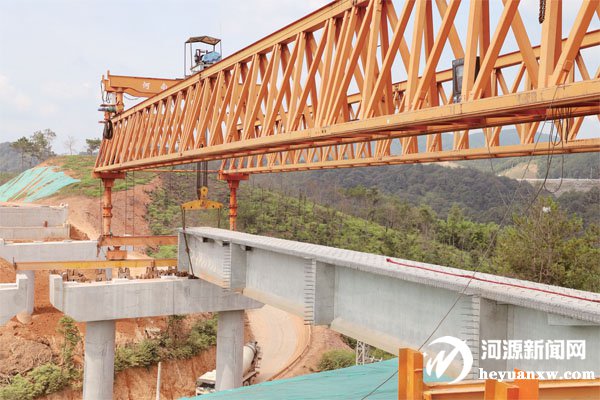 據了解,龍尋高速全線需要架設預制梁共計935片,其中預制T梁424片,預制箱梁511片,首梁順利架設將為后續施工提供堅實的技術和經驗保障。此次架設的單片T梁長40米,寬1.75米,高2.5米,重達128噸。目前,項目架梁施工和預制梁生產正有序同步推進,已生產預制梁157片。