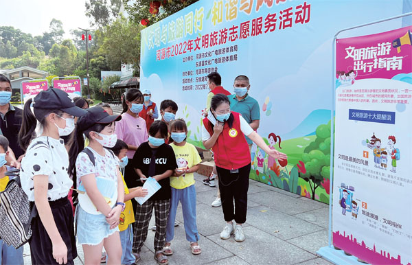 游覽過程中,志愿者為孩子們講解文明旅游知識、景區(qū)情況等。