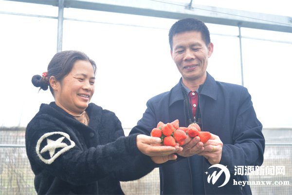 講起這幾年家里的變化,夫婦倆感慨不已。由于孩子患病需要長期堅持治療,一家人在幾年前成了幫扶的貧困戶,兩人也不得不在家附近找零工做。2016年,幫扶單位給黃仕添一家及其余兩戶脫貧戶劃定大棚實驗種植區,嘗試讓他們通過種植產業增收。同時通過投入13.2萬元引進華南農業大學“甘露”“紅寶”優質草莓、中國熱帶農業科學院精品西瓜和優質葡萄開展大棚種植,帶動該村當年的貧困戶參與種植,實現產業穩定扶貧,提高他們的經濟收入。