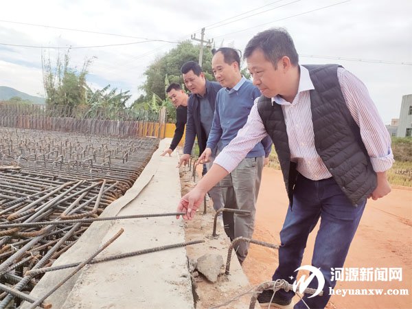 溫鋼堅(jiān)(右二)跟深圳駐中壩鎮(zhèn)幫鎮(zhèn)扶村工作隊(duì)一起了解中壩過境路建設(shè)情況。