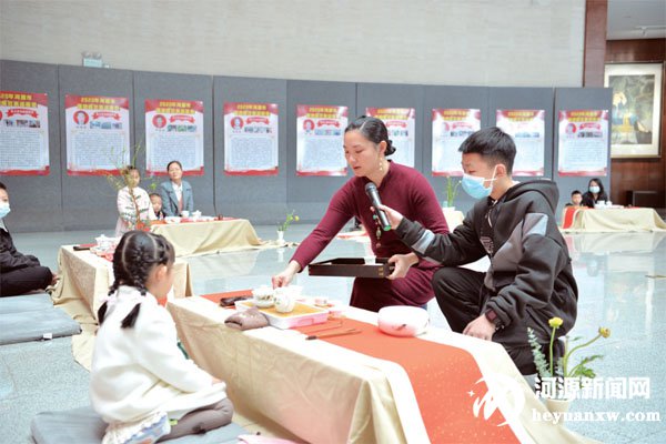 當天下午,市博物館開展“溫暖臘八·雅聚河博——一年一歲一團圓茶會”,通過泡茶、飲茶、奉茶、賞茶藝以及誦臘八詩等活動,回歸傳統,讓參與的市民感受古意和冬日的濃濃溫情。悠悠茶韻,濃濃茶香,茶會以頌臘八詩表演拉開序幕,大家歡聚一堂,在茶藝師的指導下,紛紛拿起桌上的茶具學習泡茶技藝、奉茶禮儀等,在有趣的茶藝活動中接受傳統文化的熏陶,感受傳統茶文化的魅力。