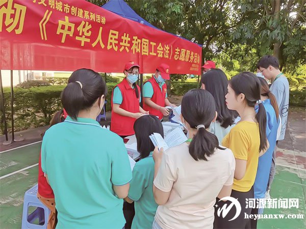 本報訊 記者 劉奇峰 通訊員 龍丹 為助力創建全國文明城市,市總工會踐行市文明單位責任,積極參與文明城市創建,持續開展志愿服務活動。近日,市總工會黨團員志愿者到河源國家高新區廣東美晨通訊有限公司開展2022年河源市文明單位參與文明城市創建系列活動——宣傳貫徹《中華人民共和國工會法》志愿服務活動。
