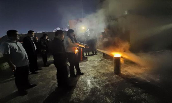 本次培訓主要以《企事業單位消防安全知識講座》課件內容為主,共有三個環節。第一個環節是觀看消防安全警示教育片,對警示片中的事故案例進行分析,并對各類火災及滅火方法、高層建筑發生火災逃生技巧和消防急救知識進行了培訓,提升力消防安全“四個能力”;第二個環節是理論知識培訓,對如何開展場所火災隱患的檢查發現與處置、如何開展火災事故應急疏散引導、發生火災時應采取何種方式自救、危急關頭使用何種工具逃生自救技能等內容進行詳細講解;第三個環節是實操培訓,全體參會人員現場進行滅火器、防毒面罩使用的實操實訓,參與消防逃生應急演練。