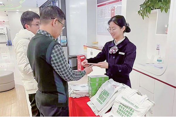 活動現場,工行河源分行營業部驛站電視屏不間斷地播放由總省行制作的宣傳海報,并設立反詐宣傳咨詢臺,該行工作人員還引導到店等候客戶掃描“中國工商銀行客戶服務”公眾號的反詐專欄,學習反詐金融案例,與客戶現場分享反詐干貨,交流心得,為客戶解答疑惑,讓客戶更加深入地了解到我國目前的反詐形勢及工行為反詐作出的一系列措施。此外,工行河源分行營業部利用微信支付線上《微信支付手冊》、線下反詐提示購物袋等資料和宣傳品,在現場以送福利的形式把反詐熱潮帶到客戶的日常生活中,擴大宣傳覆蓋面,提升防范電信詐騙宣傳的滲透力、影響力和吸引力,做到人人知反詐,人人懂反詐。
