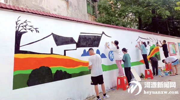 賦能鄉(xiāng)村振興,整治美好人居環(huán)境。返鄉(xiāng)大學(xué)生充分發(fā)揚(yáng)吃苦耐勞、任勞任怨的精神,拿著打掃工具,重點(diǎn)清理村莊道路兩側(cè)、村民房前屋后的環(huán)境。同時(shí),還積極向村民宣傳鄉(xiāng)村振興相關(guān)知識(shí),切實(shí)提高村民對(duì)推進(jìn)鄉(xiāng)村振興戰(zhàn)略工作的知曉度、支持度和滿意度,并開(kāi)展了“我用青春描繪多彩家鄉(xiāng)”美麗鄉(xiāng)村墻繪活動(dòng),返鄉(xiāng)大學(xué)生將紅色革命文化、家訓(xùn)家風(fēng)文化、田園風(fēng)光文化繪制到村道墻壁上,展現(xiàn)了源城鄉(xiāng)村的山水之美、人文之美、和諧之美和發(fā)展之美。