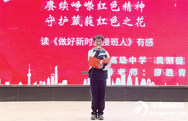 活動伊始,活動方為在河源市“南國書香節·讀一本好書”愛國主義教育征文大賽中獲獎的劉莘蕾、李佳玲、黃晶晶、黃剛健等同學頒獎。據了解,這些學生的《以心火照亮復興之路》《誦青年拼搏之詩,歌祖國復興之章》《承公仆精神接時代火炬》《賡續崢嶸紅色精神》等作品寄托莘莘學子濃濃的愛國之情,在征文大賽中脫穎而出,榮獲二、三等獎以及優秀獎的好成績。