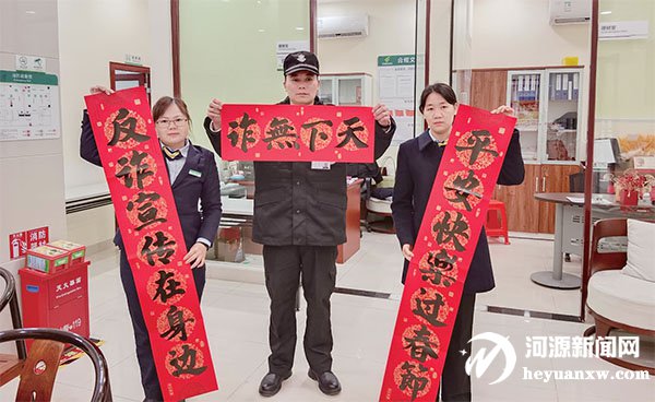 翰墨飄香寫春聯添年味 郵儲銀行河源市分行開展“揮春送福”暨普及反詐知識活動