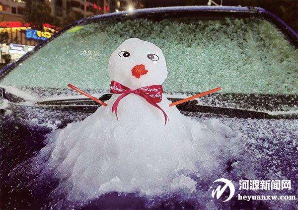 22日晚,連平上坪一村民捏了一個可愛的小雪人。(網友提供)