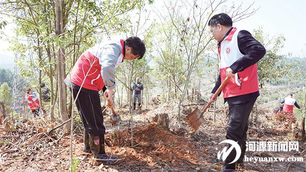 市檢察院、東源縣檢察院組織黨員干部開展義務植樹活動,為“檢察林”添綠。
