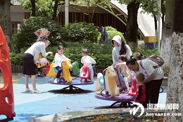 市民游客帶著孩子在市兒童公園玩耍。