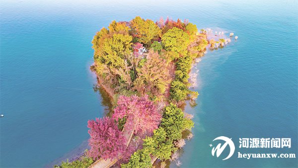 楓葉紅似火,美景醉游人。近段時間來,河源萬綠湖景區的楓葉進入最佳觀賞期。走進萬綠湖景區的龍鳳島游覽區,漸次轉黃轉紅的楓葉或在岸邊,或在步道邊,與湖水交相輝映,同藍天白云、綠樹青山一起,構成一幅美不勝收的山水畫卷。