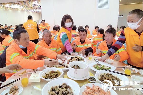昨日,2024年“情滿東源·暖冬行動(dòng)”關(guān)愛(ài)環(huán)衛(wèi)工人公益活動(dòng)在東源縣溢香禧宴酒樓舉行,邀請(qǐng)東源縣近300名環(huán)衛(wèi)工人吃年飯。