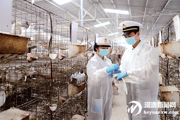 河源海關關員到鴿子養殖場開展檢驗監管。