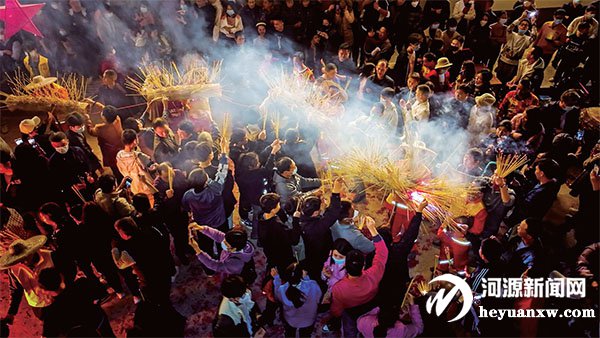 龍是中華民族的精神圖騰,飛龍?jiān)谔臁堷P呈祥等漢字成語,就寄寓著人們對神龍崇拜的想象力。舞龍是龍?jiān)诂F(xiàn)實(shí)生活中被具象化的一種精神娛樂存在,最早始于商代,全國各地流行眾多的舞龍活動,而在河源客家地區(qū),最典型的是舞香火龍和布龍。燈塔鎮(zhèn)高車村的香火龍,是河源香火龍的代表,其形狀質(zhì)樸,香火熱烈,游若飛仙,深受當(dāng)?shù)厝罕娤矏郏麚P(yáng)南粵,為河源市非物質(zhì)文化遺產(chǎn)。