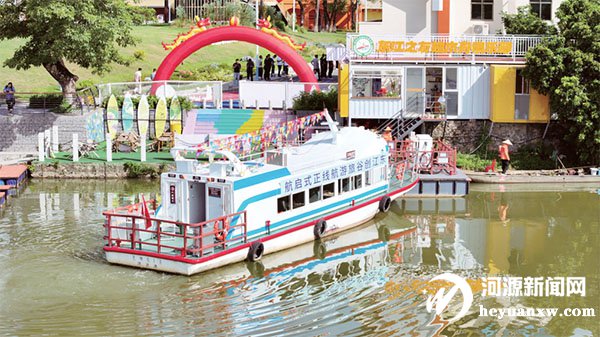 伴隨著發令汽笛響起,“東江畫廊航線”正式通航。該航線由東源縣仙塘經濟發展總公司與廣東萬綠湖旅游船艇公司合作打造,9月29日起開啟為期2個月的試運營,至11月28日結束,每天14:30、16:00各設一班航次。航線以糖巢創客社區為核心樞紐,設計往返式東江觀光航線,單次航行時長約1小時。航線投入20座新能源客船“萬綠012”號,兼顧生態環保與游客體驗。試運營期間,獨立包船價格為1000元,散客船票每人66元,正式運營后將根據市場反饋調整航線及票價。