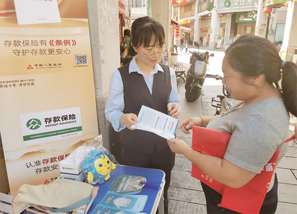 工作人員為市民普及存款保險(xiǎn)知識(shí)。