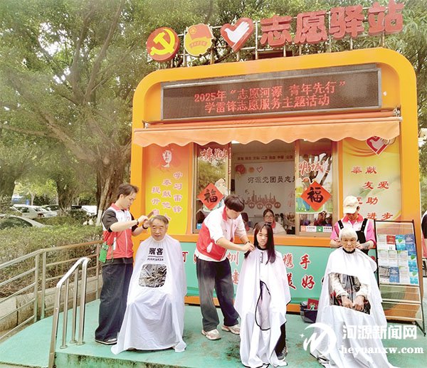 3月2日,河源市好人互助聯合會義剪隊的志愿者在市文化廣場志愿驛站舉行義剪活動。