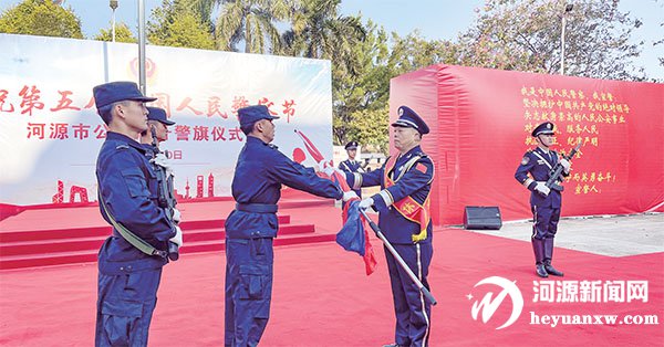 本報(bào)訊 記者 曹志成 通訊員 謝曉丹 歐陽瓚 1月10日,市公安局警官訓(xùn)練處的國旗廣場上警歌嘹亮,河源市公安局慶祝第五個(gè)中國人民警察節(jié)升警旗儀式在這里舉行。