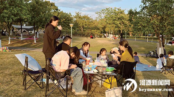 在市區(qū)東江灣公園里,市民在草坪上漫步、玩耍、野餐,暖陽下的美好盡收眼底。河源九里湖公園畔,不少市民三五成群或緩步散步、或健步快走,盡享陽光清風(fēng),一睹萬綠湖湖光美景。