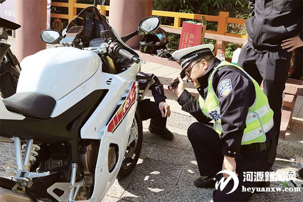 本報訊 記者 曹志成 通訊員 羅莉娟 近日,我市公安交管部門在源城區桂山大道開展摩托車交通違法專項整治行動,積極引導摩托車駕駛員自覺遵守交通法規、安全文明騎行,防范化解道路交通安全風險。