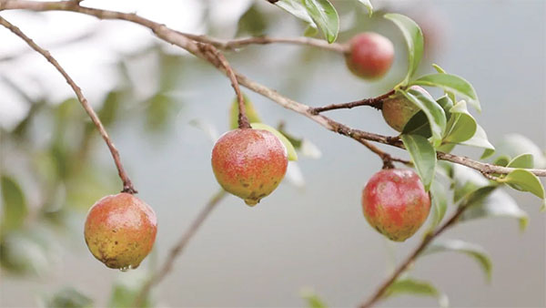 山風(fēng)拂來,一樹的油茶果